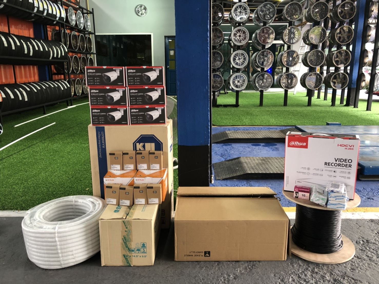 เริ่มงานติดตั้งกล้องวรปิด CVI 8 จุด | ร้านโตออโต้ไทร์ | บางกรวย จ.นนทบุรี
